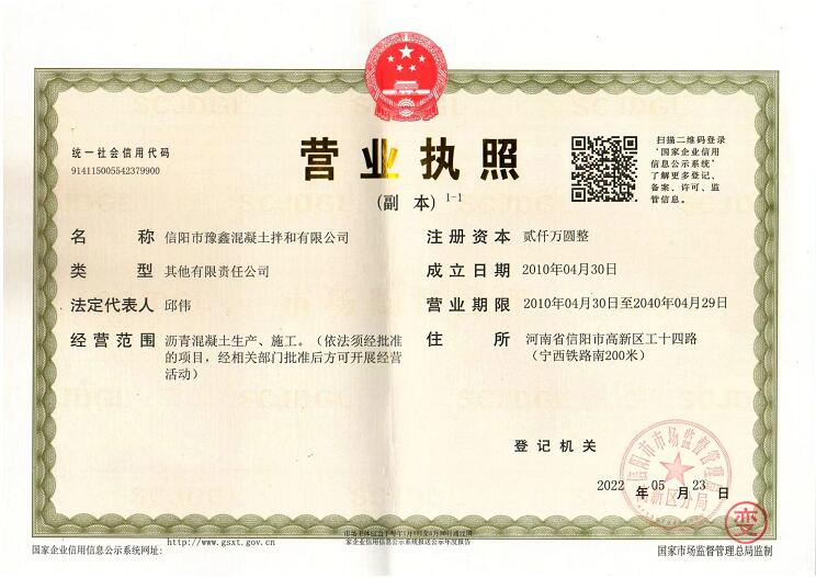 信陽市豫鑫混凝土拌和有限公司是從事市政工程建設施工的專業施工單位,公司成立于2011年2月,項目建設規模占地20 畝,項目總投資2000余萬元。公司現有各類專業技術管理人員30余人,施工經驗豐富、技術力量雄厚。